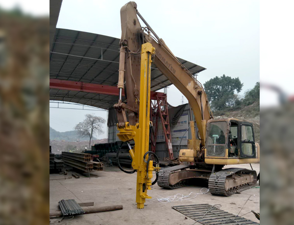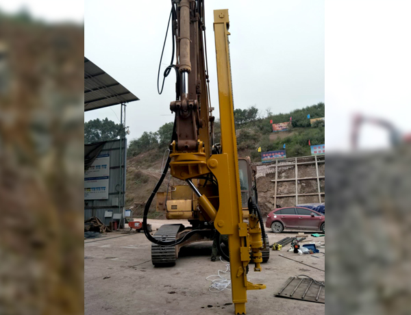 2、前后左右自由伸展,當(dāng)挖掘機(jī)在工地不平坦的情況下, 挖機(jī)手可根據(jù)位置不同調(diào)整鉆桿角度,保持90°垂直鉆孔。
