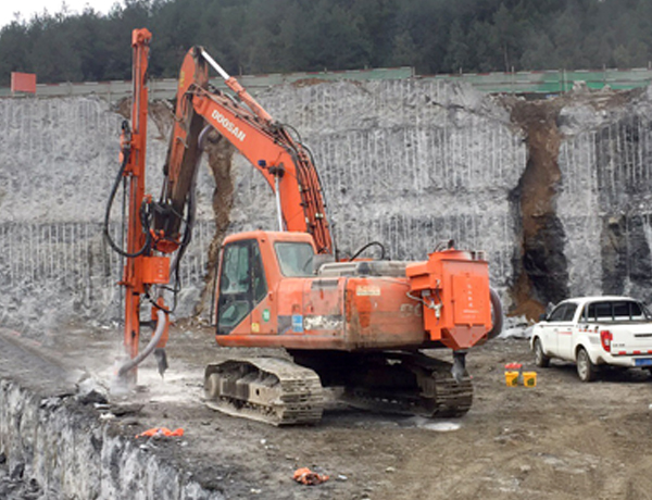 億山ES300挖改全液壓鑿巖機(jī),廣泛適用于花崗巖、石灰石、大理石、火山石、青石、玄武巖等硬度較高的堅(jiān)巖石的各種爆破前鉆孔作業(yè)(硬度F大于6級(jí));可以借助挖機(jī)的操作靈活性用于錨桿鉆孔;也遠(yuǎn)遠(yuǎn)低于一體式鑿巖鉆機(jī)的采購價(jià)格。具操作簡易,設(shè)計(jì)人性化,感觀直接,實(shí)現(xiàn)挖掘機(jī)一機(jī)多用等特性。