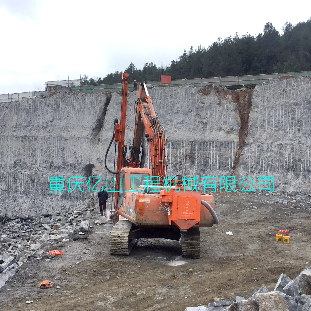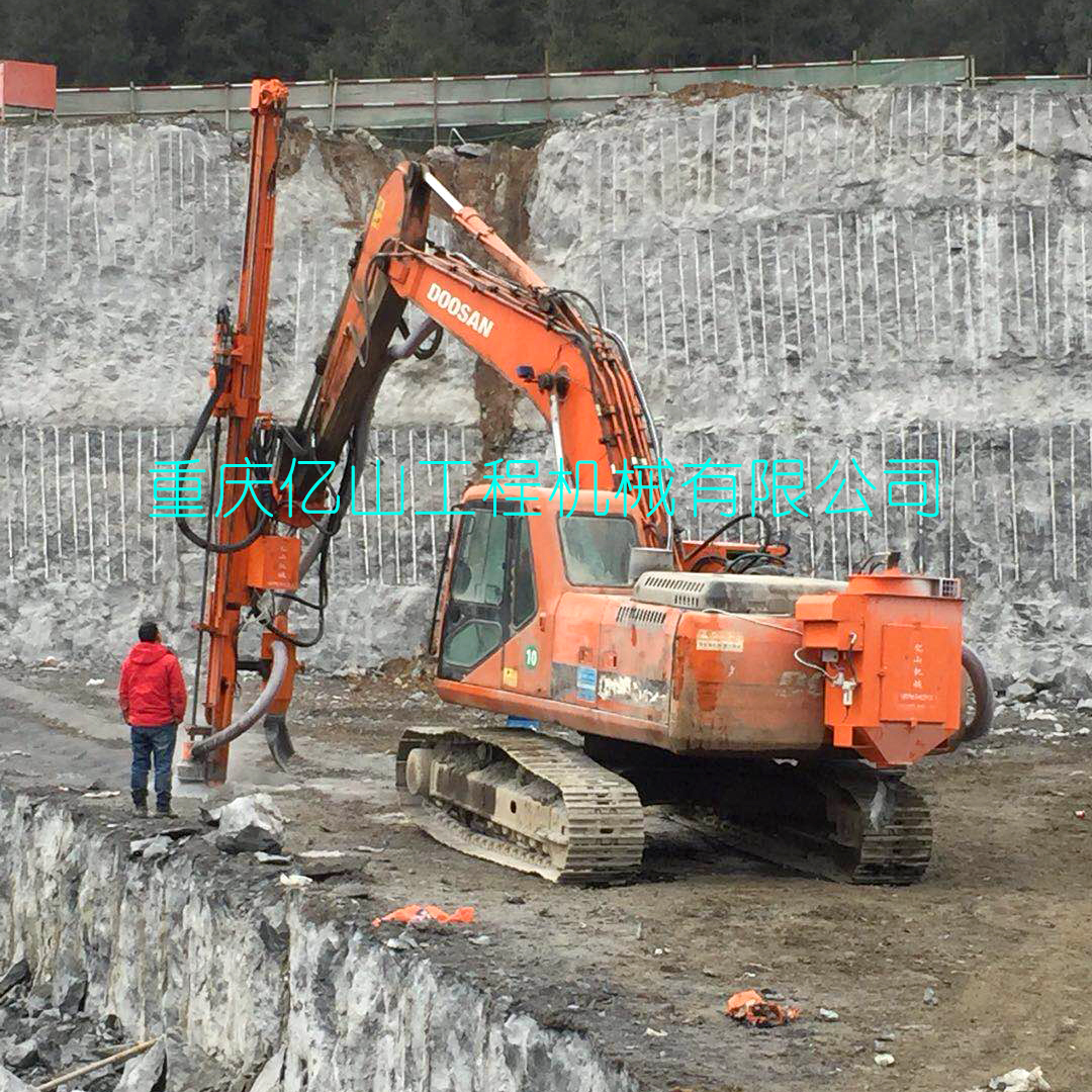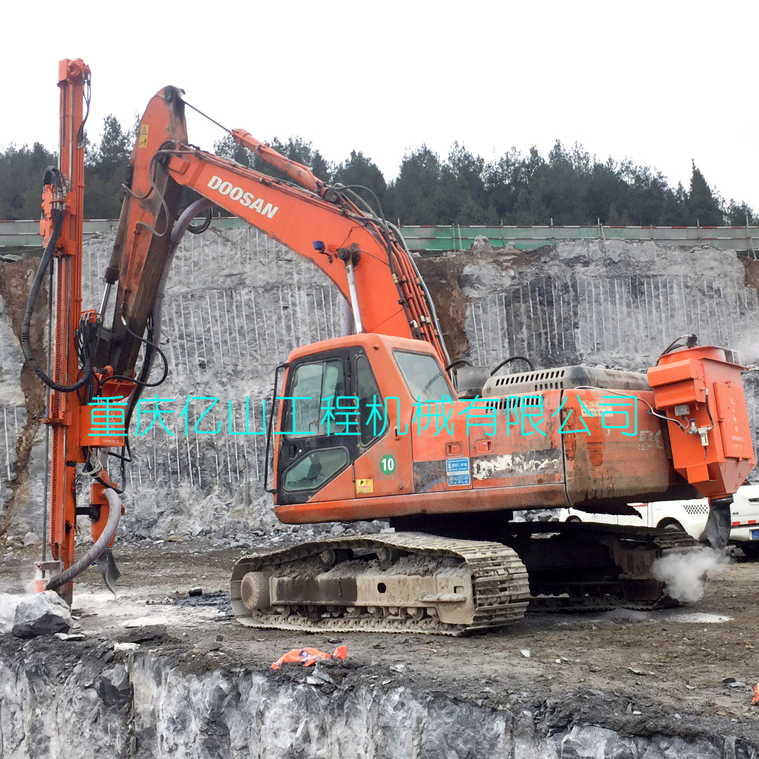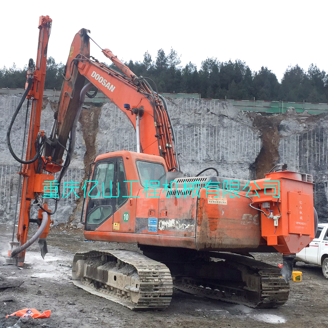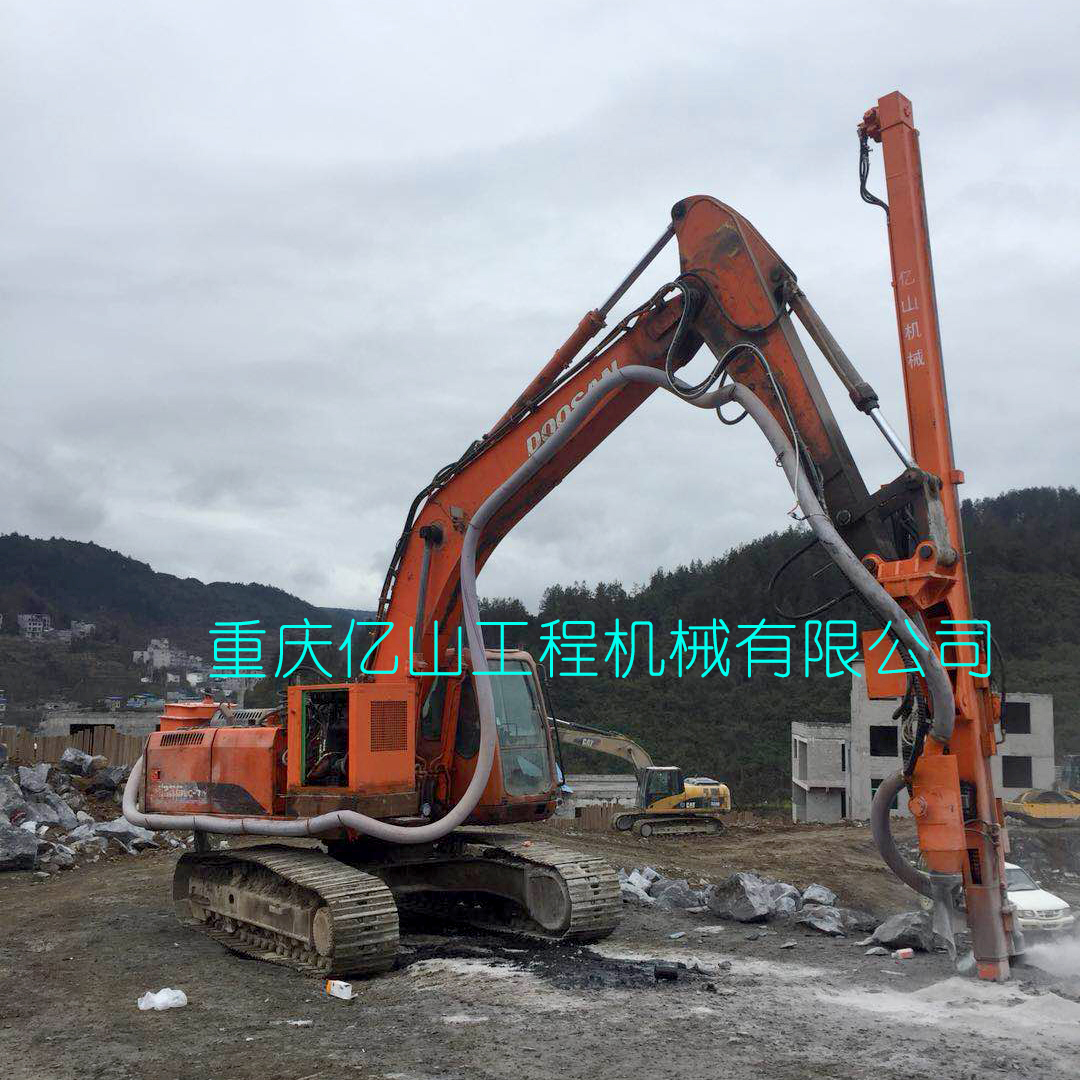 重慶酉陽--斗山225挖機改全液壓鑿巖鉆機打80孔5.5米帶吸塵
