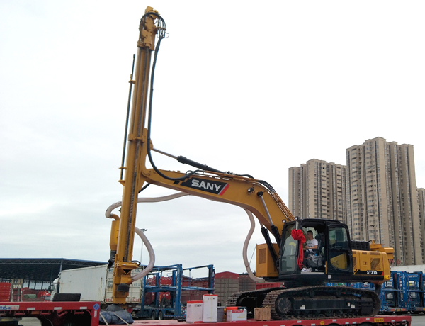 2、前后左右自由伸展,當挖掘機在工地不平坦的情況下, 挖機手可根據位置不同調整鉆桿角度,保持90°垂直鉆孔。