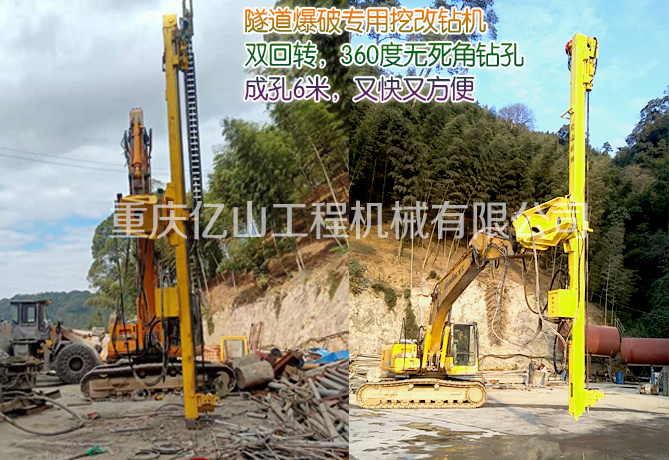 億山ES300挖改全液壓鑿巖機,廣泛適用于花崗巖、石灰石、大理石、火山石、青石、玄武巖等硬度較高的堅巖石的各種爆破前鉆孔作業(yè)(硬度F大于6級);可以借助挖機的操作靈活性用于錨桿鉆孔;也遠遠低于一體式鑿巖鉆機的采購價格。具操作簡易,設計人性化,感觀直接,實現(xiàn)挖掘機一機多用等特性。