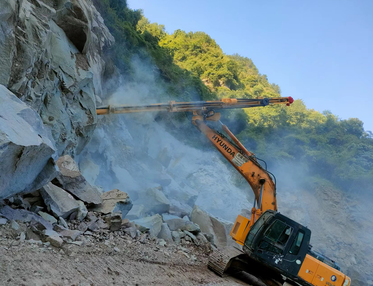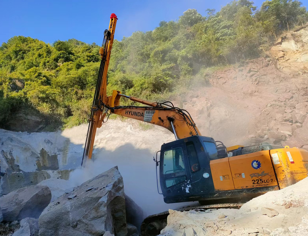 挖機改鉆機為您開啟了新的施工方法。挖斗+破碎錘+切削鉆機+鑿巖鉆機+潛孔鉆機,一機多用,為您降低成本。無論您是從事采石業、采礦業、土建工程、鋼鐵工業、隧道工程或路橋工程,在許多傳統方法失效或成本高的地方,您都可以借助這靈活、耐用、噪音小且震動低的特種機器。