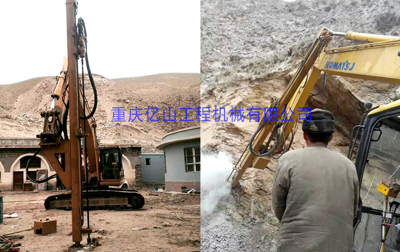 1、安裝拆卸方便。挖掘機小臂不用拆卸,不影響挖掘機自身功能,直接類似掛破碎錘一樣,管路系統都可以共用,真正實現一機五用并互換:挖土、破碎錘、切削鉆、鑿巖機、潛孔鉆。拆卸時間和換斗時差不多,約10-20分鐘。